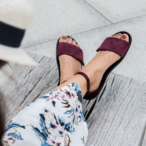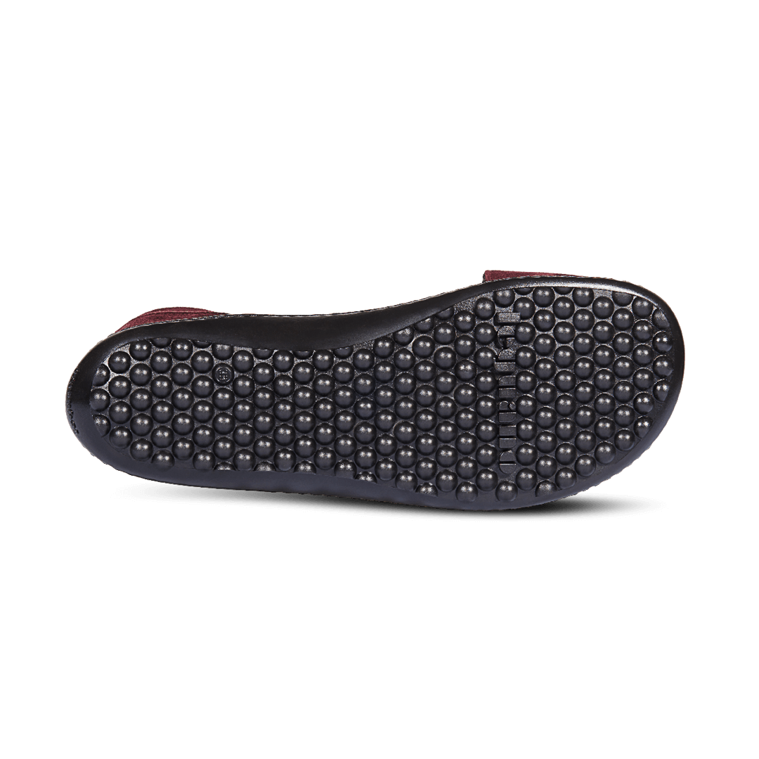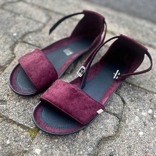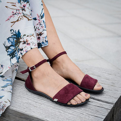 The barefoot shoe that makes women's hearts beat faster. In a fresh dark bordeaux, the sandal goes with all outfits and sets great accents. The wide strap over the back of the foot can be adjusted using the Velcro fastener and is extremely comfortable to wear.